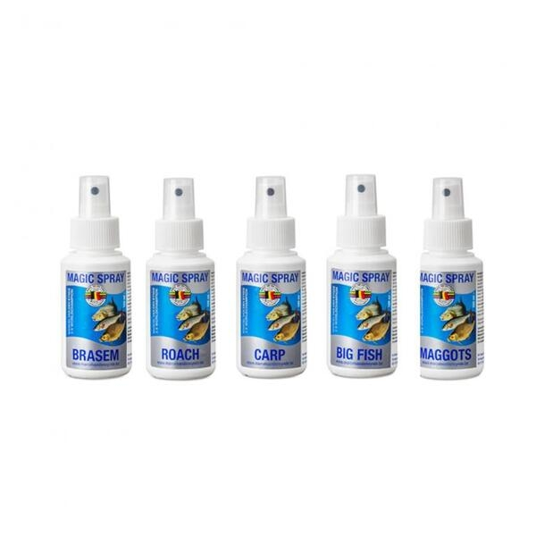 | Kies een optie | Magic Spray 100ML, Magic Spray Big Fish 100ML, Magic Spray Karper 100ML, Magic Spray Maggots 100ML, Magic Spray Voorn 100ML |